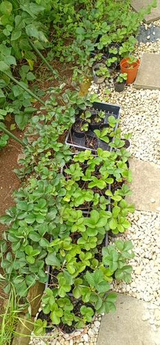 ・イチゴ 夏頃からランナーを伸ばして苗作り。真面目に苗を作って植えるのが初めてのため、何個苗を作ればいいのかよくわからず、HCで苗ポット(6号だったか?)を100個セットのものを1つ買ってきて(150JPY)とりあえず始める。出てきたランナーをことごとく回収…