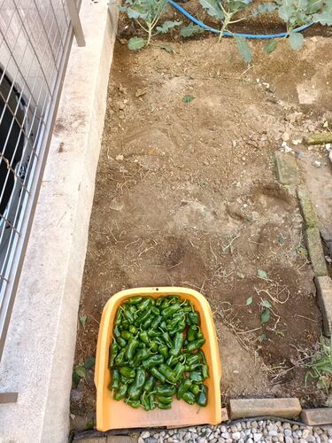 ピーマン2株目撤去、集めてみたら結構な収穫になって冷蔵庫の野菜室を圧迫。 散水ホースが経年劣化(25年選手)でひび割れて水が噴き出す。切り詰めて再度繋ぎ直す(が、劣化した部分は他にも多いのでまた同じようなことが起こるはず)。 いい加減、ポットに植え…