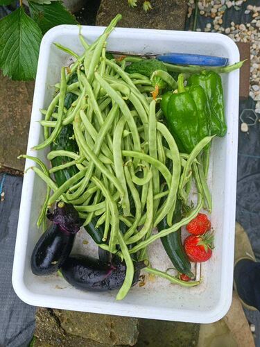 今日の収穫は、イチゴ、ナス、ピーマン、キュウリと、いつものように大量のインゲン。配るか...。 菜園巡視、未熟なものも含みイチゴが3,4個食べられている。ネズミの完全駆除には至らず。 いろいろ実がつき始めた。パプリカが大きくなってきたが、緑色のま…